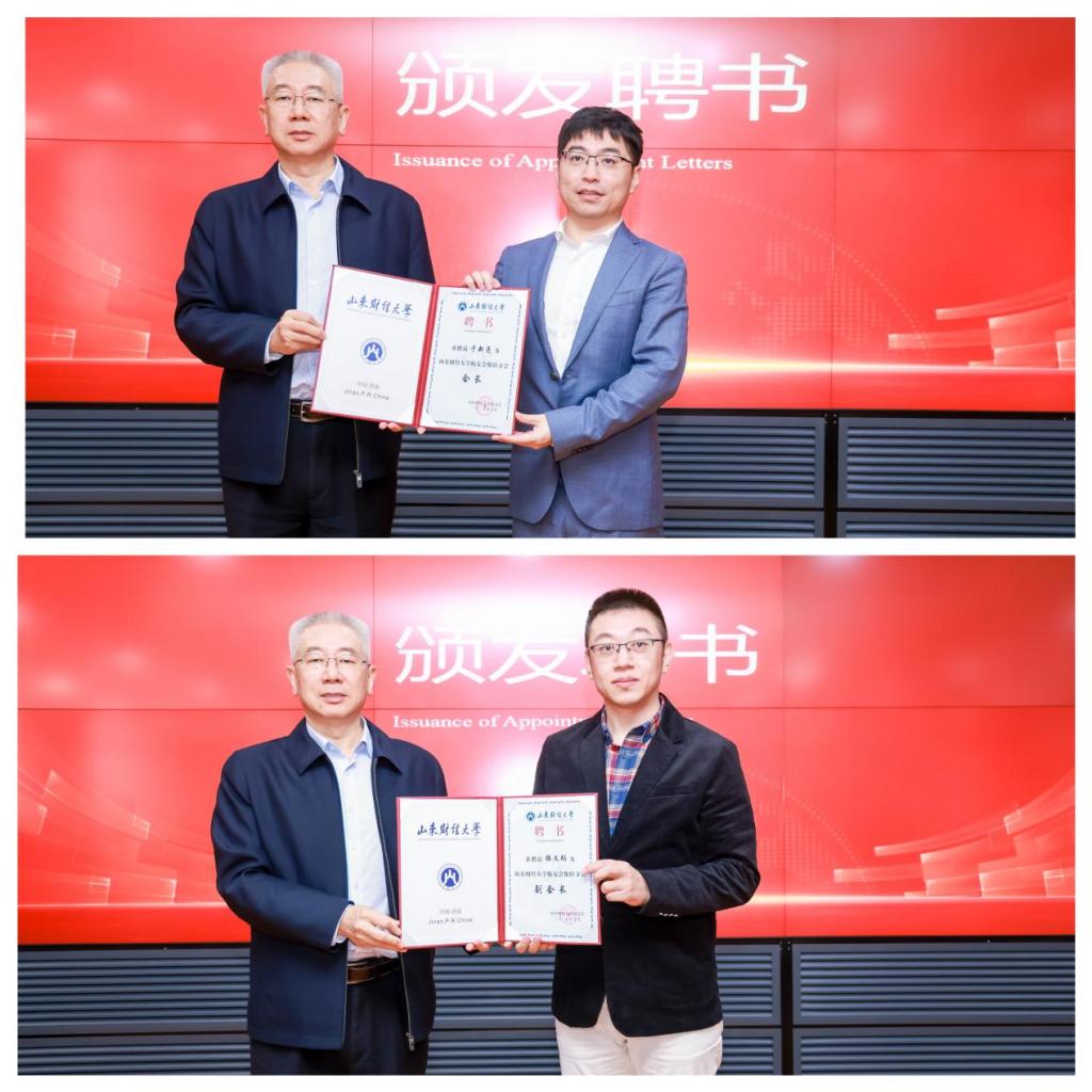 同时,新增两位业界校友担任副会长:太平人寿保险有限公司济南市公司党支部书记、总经理金鲁强,同方全球人寿山东分公司党支部书记滕文韬;437bwin必赢国际党委副书记王斐斐任秘书长。张新为新任会长于新亮、副会长滕文韬颁发聘书。